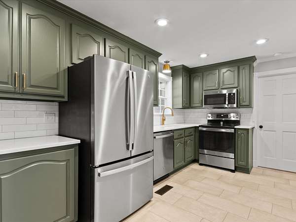 - Dishwasher, Electric Oven, Electric Range, Microwave, Refrigerator, Stainless Steel Appliance(s)
