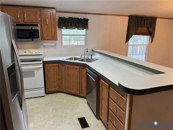 Major price reduction. So much to say about this beautiful property and the first is ""o see for yourself." Over 9 acres of totally private 'Park-Like' living. Landscaped grounds surrounding the home and the large 20' X 25' detached RV-styled entry garage with 110/220, air conditioned and heat too. You also get another detached 12 X 12 Garden Storage Shed. The trees give you year around privacy circles the home. In from the woods are the deer. They come up to the rear home deck to be fed corn from the barrel. This 2000 built ranch-styled manufactured home comes with a generator, dual water filters, newly 2023 HVAC Heat Pump, refrigerator, washer, dryer, newly 2024 dish washer. Your primary bedroom bathroom comes with a large soaking tub. The Kitchen, breakfast is open to the main dining and living area. There is the added den for a study office or used as a dining room. Location, Location, Location, short minutes to Crewe, to Blackstone, and short minutes to Fort Picket. There you have it.