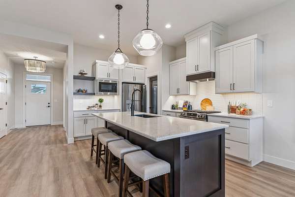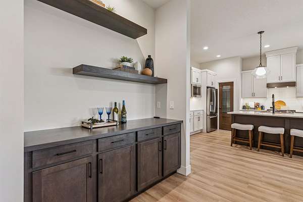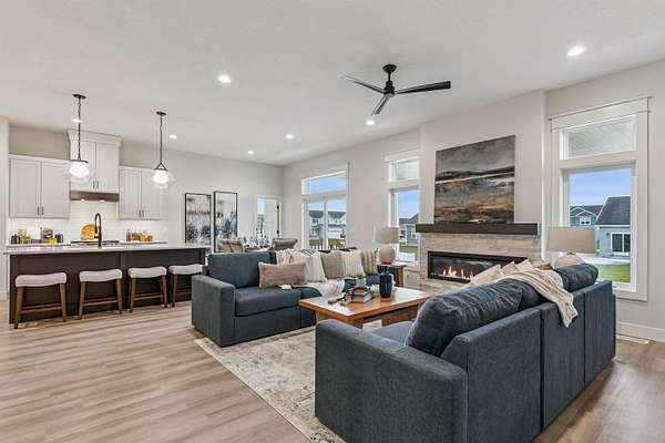 Welcome to The Craftsman, a stunning new construction home by Skogman Homes in The Arbors. This brand-new floor plan features 3 bedrooms and a spacious office on the main floor, showcasing luxurious LVP flooring, quartz countertops, upgraded cabinetry, and an elegant electric fireplace. The lower level offers a large rec room, a 4th bedroom, and a 3rd bathroom, providing ample space for entertainment and guests. The home includes a 3-stall garage, ensuring plenty of storage and parking. Enjoy outdoor living with a large covered patio in the backyard, perfect for relaxing and entertaining. Conveniently located close to shopping and Aldrich Elementary, this home combines modern amenities with a prime location. Don't miss out on this exceptional opportunity to own in The Arbors! Completion is projected to be November 7, 2025 Photo is of a similar home