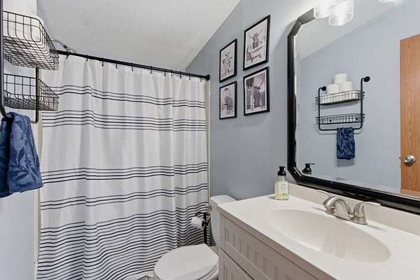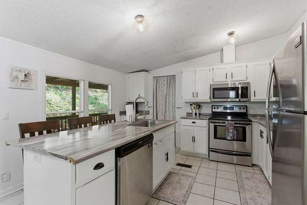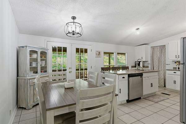 Inside, you’ll find a stylish mix of ceramic tile and wood flooring, along with a kitchen equipped with Frigidaire stainless steel appliances. Cozy up by the fireplace in the den, unwind on the covered front porch, or host gatherings on the spacious back deck. Use the storage building for extra space and functionality. This is a manufactured home on a permanent foundation. Home is equipped with a full house water treatment and reverse osmosis system.