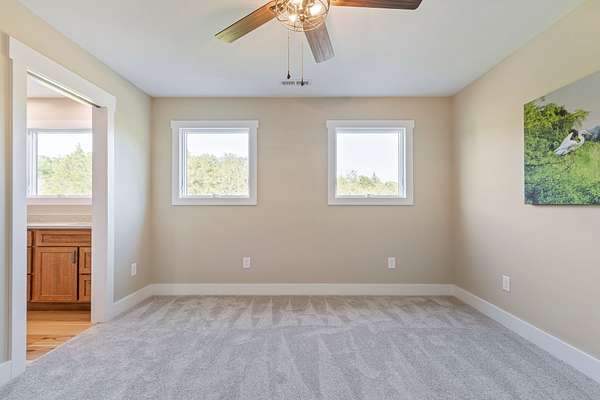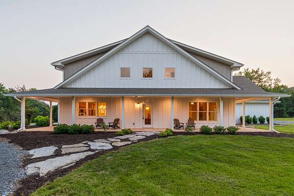 This contemporary farmhouse offers the perfect balance of luxury and practicality for a peaceful country lifestyle. Built with innovative Fox Block construction and concrete exterior walls, the home provides exceptional energy efficiency, noise reduction, enhanced protection from severe weather, and year-round comfort. The kitchen features extensive storage with craftsman-style custom cabinetry and an adjoining walk-in pantry with desk space. A large dining area and family room flow seamlessly from the kitchen and offer expansive views of the surrounding landscape. The main-floor primary retreat (currently under construction) provides a private getaway with a spacious bathroom, walk-in closet, coffee bar, and sitting area. A separate exterior entrance allows the space to also function as a private mother-in-law suite. The second floor includes two large bedrooms, each with its own en-suite bathroom and walk-in closet, plus an additional room suitable for a large office or extra sleeping space. An attached shop with convenient pull-through bay doors offers flexibility for hobbies, equipment, or storage. With tall ceilings and generous space, it can accommodate an RV, boat, or other recreational equipment. The entire roof system of the home and shop is spray-foamed for added insulation and noise reduction. A separate barn provides space for livestock or a workshop and includes an 11×16 finished room suitable for a tack room, feed storage, or private retreat, along with a hay loft for additional storage. This 10-acre property offers a sense of escape and connection to nature, a place to slow down and truly be present. It is a place to gather with family, unwind from the constant rush of everyday life, and create lasting memories. NOTE: Home is in the process of a primary bedroom addition / renovation on the main floor (estimated completion date May 1), adding an additional 1060 sq ft to the original home.
