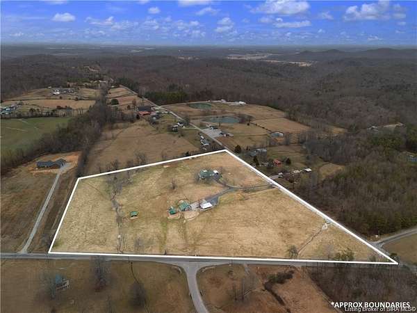 14 + ACRES! Rural living! Road frontage on 2 sides! This property has been working horse and cattle farm. Property has nice, paved driveway leading to home, barn and kennels. Property is fenced for livestock. 4 fenced sections with gates. 2 automatic waterers, round pens for working horses and livestock. Barn has horse stalls and hay loft with 2 turn out sheds. Home features 3 bedrooms, kitchen is open to living room and both front and rear porch areas. Great for entertaining. Kitchen and bath has had some upgrades. Matching metal roofs on both house and barn. This property has so much potential. Dog kennels could very easily be converted to chicken coops. Grab your boots and schedule your showing today!