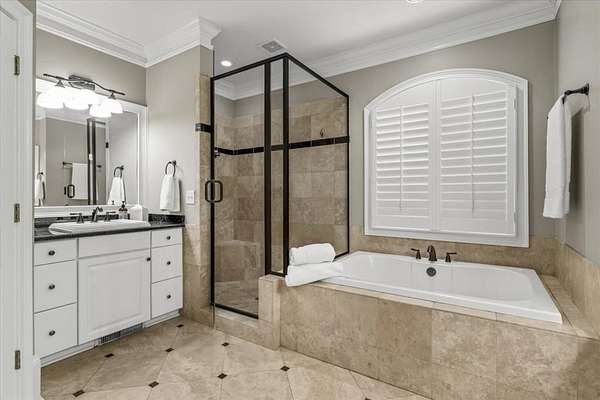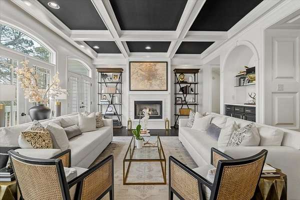 - Beamed Ceilings, Bookcases, Coffered Ceiling(s), Crown Molding, Entrance Foyer 2 Story, High Ceilings 10 ft Lower, High Ceilings 10 ft Main, His and Hers Closets, Tray Ceiling(s), Vaulted Ceiling(s), Walk-In Closet(s), Wet Bar