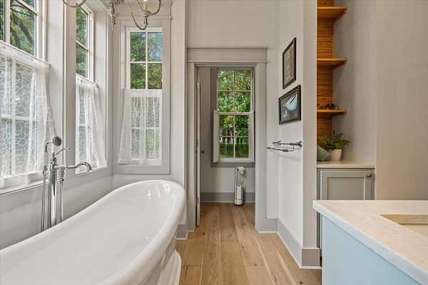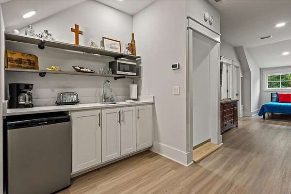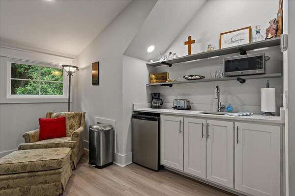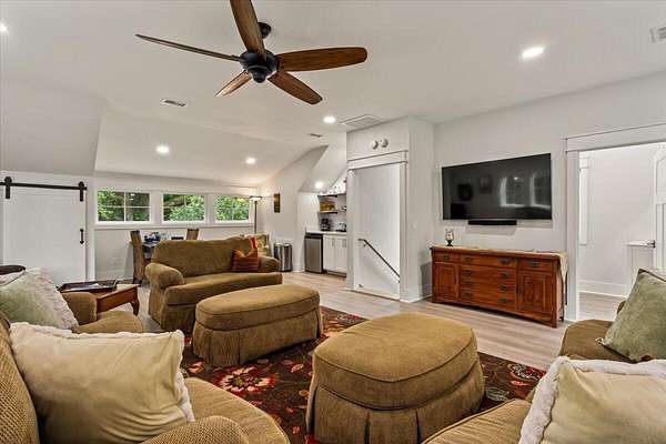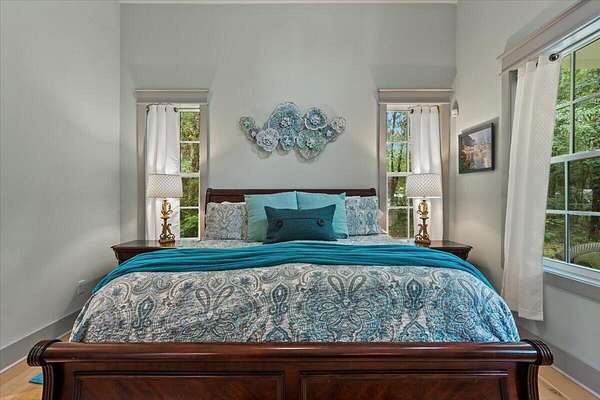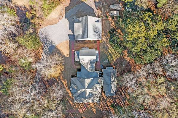 An incomparable Southern Retreat nestled on 1.84 acres in the Charleston Lowcountry, just 15 miles from vibrant and historic downtown, and 12 miles from Kiawah Beach Walker Park. This thoughtful and award winning Southern Living designed home delivers easy first floor living for those looking to downsize but also wanting to have a luxurious home with established income producing private guest quarters. Built in 2018, the home was thoughtfully designed with luxury architectural details and understated sophistication. This estate offers three distinct living spaces totaling over 3,300 square feet--making it ideal for multigenerational living, extended guests, or discerning buyers seeking income potential through luxury short-term rentals. The Main Residence delivers open floor living,welcoming you with vaulted ceilings, soaring up to 20 feet, rich hardwood floors, and a wood-burning fireplace that anchors the great room with warmth and charm. A beautifully appointed kitchen features a striking 9.5-foot island, pantry, custom lighting (with voice-activated controls), and seamless indoor-outdoor flow to the expansive 36-foot front porch. The Primary Suite is your sanctuary, with spa-like bath, soaking tub, and custom tiled walk-in shower. A powder room and loft bedroom or office space compliments the main dwelling. There are many premium finishes throughout, including 9' solid-panel doors, impact glass windows, designer fixtures, Rinnai tankless hot water system, wide plank white oak flooring, open-cell foam insulation, brick sidewalks, Hardie Plank siding, standing seam metal roofs on all structures, fully encapsulated with for year-round efficiency, wrought iron entrance gate (wired for automation), and a full security system. Spend days and evenings relaxing on your 36 foot southern gathering porch or the 240 square foot screened porch that connects the main dwelling to the guest cottage. This central area flows out to the brick patio for grilling and chilling under the massive and ancient live oak tree. The Guest Cottage, 500 square feet, is enchanting, privately situated and connected to the main home. This two-story guest retreat with private porch and entrance, a successful rental, includes an open loft bedroom, custom tiled bath, and kitchenette perfect for guests, caretakers, or high-end short-term rental. A dedicated 9' entrance door with charming sitting porch set among beautifully landscaped yard makes for a warm residential feel. The cottage offers full privacy without compromising proximity to the 240 foot screened lanai, perfect for optional porch swing and relaxing in the evenings. The Garage Apartment above the large 3-car garage, is 970 square feet. This huge living space is ideal for extended family, a 2nd successful rental, game room, or a home office with distingction. The residence is a premier location on Johns Island, which has become known as a "foodie destination" for Charlestonians, as well as having access to beaches and local agriculture. Here, you are tucked away in tranquil seclusion yet remarkably convenient: 15 minutes to Kiawah's Beachwalker Park, 25 minutes to historic downtown Charleston and major hospitals, 30 minutes to Folly Beach The guest house and garage apartment are established Short Term Rental locations with "Super Host" rated listings. The property is considered Flood Zone X and there is no HOA.