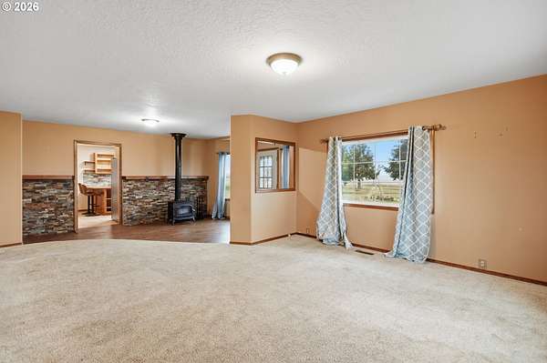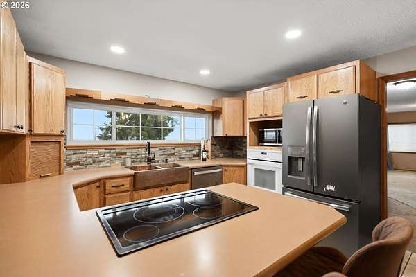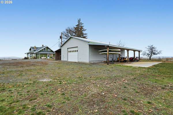 Don't miss this beautifully maintained and upgraded 5-bedroom farmhouse set on 7 acres just minutes south of Goldendale. The property features two separate pasture areas that are fenced and cross-fenced, offering stunning double mountain views and exceptional usability. The grounds are a standout, with established apple trees, a pear tree, and a fig tree, along with squash and pumpkin vines, rose bushes near the house and carport/cabin, hollyhocks, hellebores, and two lavender bushes, plus a quaint aspen stand by the cabin. Outdoor living is enhanced by an outdoor firepit, playground, and a mowed half-mile loop trail around the property's perimeter - ideal for walking or running. A purposefully designed walking path also runs along the east edge of the property. The home offers flexible and spacious living areas, including a study/office and primary bedroom on the main level, which could be combined to create a larger primary suite or the study could serve as a 5th bedroom. There are two bathrooms on the main level and one upstairs. Extensive updates include HVAC, kitchen, most wiring and plumbing, flooring, interior and exterior paint, clawfoot tub, tile shower, stamped concrete, and more. Kitchen appliances and washer/dryer are included. A nicely appointed guest quarters features a bathroom with shower and sink, plus a rock fireplace, making it ideal for extended family, guests, or rental use. A large heated 30' x 40' workshop/garage is attached to the guest quarters, with a covered carport near the house and a covered shed dormer on the opposite end. Additional improvements include a loafing shed for animals, a storage shed for garden tools, and a large circular driveway with multiple flat areas providing easy access and ample parking for trailers, boats, or multiple vehicles. Enjoy beautiful mountain views, established garden spaces, covered parking, excellent internet connectivity, and a private, quiet setting that remains close to downtown Goldendale, schools