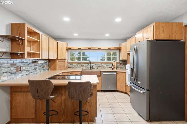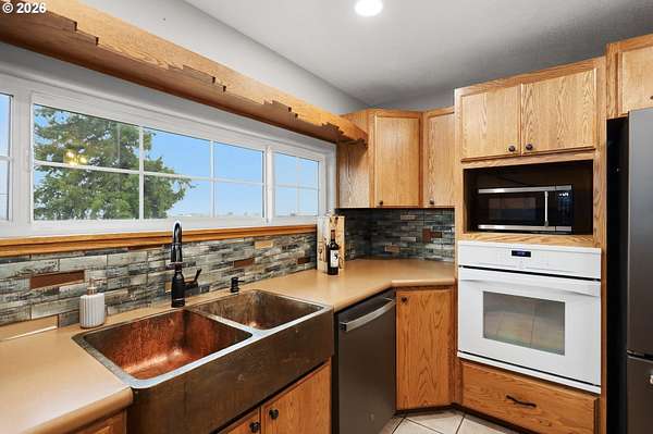 - Cooktop, Dishwasher, Free Standing Refrigerator, Microwave, Range Hood, Tile