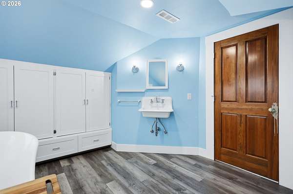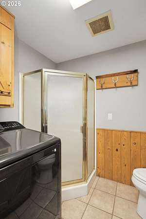 - Soaking Tub, Tile Floor, Wallto Wall Carpet, Washer Dryer, Wood Floors