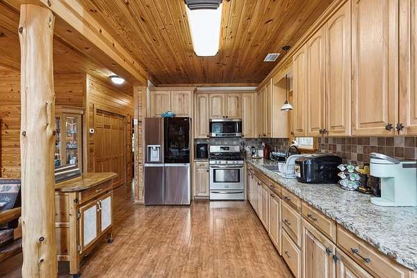 - Ceiling Fans, Circular Stairs, Convection Oven, Electric Dryer, Fireplace, Generator, Gourmet Kitchen, Jet Tub, Kitchen Island, Kitchen/Dining Combo, Laundry Closet, Living Room, Microwave, Open Floor Plan, Skylight(s), Washer, Water Softener, Whole House Water Filter, Wood Cabinets