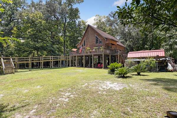 Welcome to Your Dream Riverfront Escape! This custom-built, fully furnished home sits on 2.21 acres with direct frontage on the crystal-clear, spring-fed Ichetucknee River, located in the sought after Ichetucknee River Estates. Offering 1,634 sq ft of comfortable living space and a total of 4,688 sq ft under roof, including an additional cook house or guest quarters with a full bathroom, this property is the perfect blend of Fun, function, and modern convenience. The outdoor amenities are truly exceptional, starting with a private 3-tier dock, designed for swimming, tubing, boating, or simply enjoying an unforgettable splash into the river. The new boardwalk, constructed with marine-grade poles and decking built to last, leads you straight to the water's edge, providing seamless access to the river while withstanding the elements for years to come. Step inside and be greeted by a grand living area featuring rustic furnishings, a majestic real wood spiral staircase, and cathedral ceilings. The panoramic river views are visible from every corner, bringing the beauty of the outdoors inside. Cozy up by the gas fireplace or entertain guests in the open-plan kitchen, complete with real marble countertops, maple cabinets, and a spacious island perfect for gathering. Outside, enjoy the full wrap-around porch, where you can relax and immerse yourself in the serene surroundings. Modern comforts throughout the home include a brand-new tankless hot water heater, a Generac generator, PEX waterline, and power and water running throughout the property, including power and lighting under the house. There's also plenty of room for parking and storage, ensuring this home is as functional as it is beautiful. Ichetucknee River Estates offers access to two parks and a boat ramp, making this fully furnished riverfront retreat the ultimate getaway for those seeking peace, privacy, and adventure. Turn key must see home!