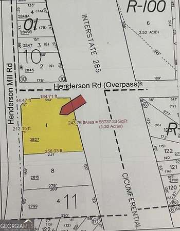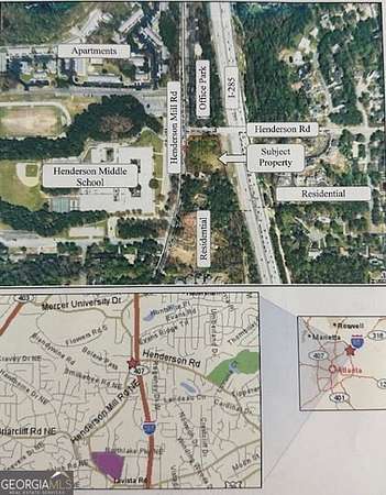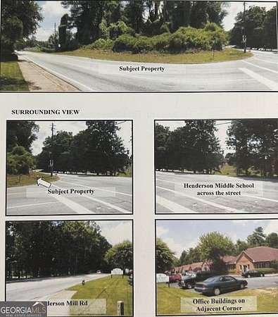 Est $6,765/moVACANT LAND....Mixed use, located at the corner of Henderson Rd & Henderson Mill Road. Adjacent to Medical/Business Office Complexes & Middle School with frontage on I-285. Excellent opportunity for like use. Zoning required. See attached Flyer for more detailed location information. Need larger lot? Call me! Up to 2.8 Acres Possible.