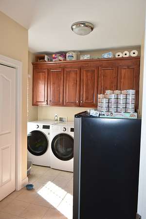 - Built-In Electric Oven, Cooktop, Dishwasher, Disposal, Dryer, Microwave, Refrigerator, Stainless Steel Appliance(s), Washer