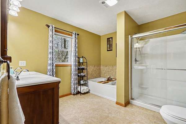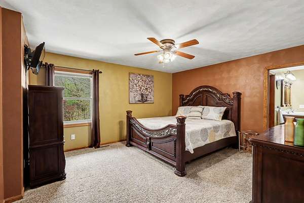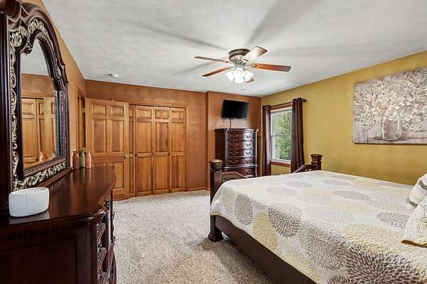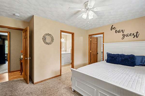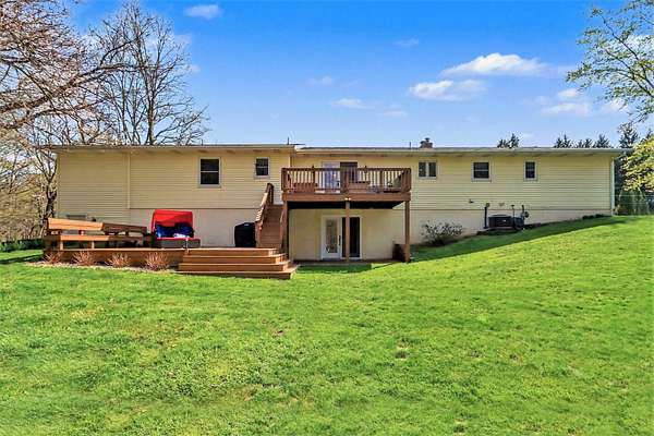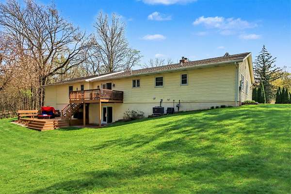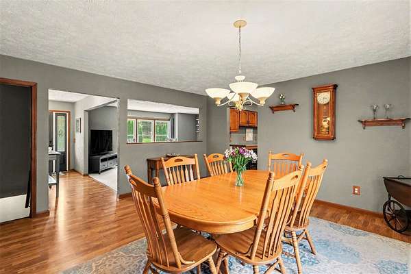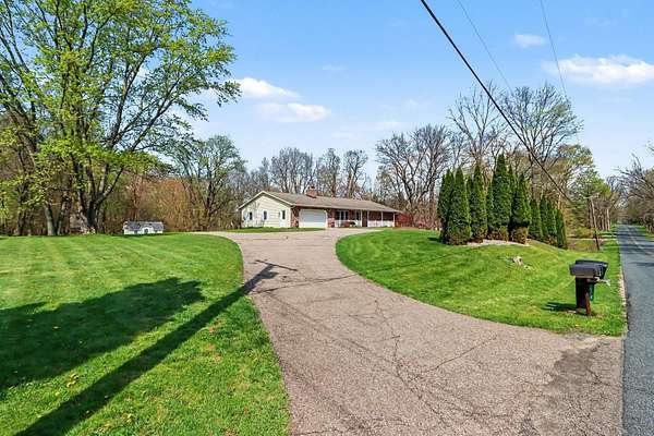 Experience the perfect blend of secluded country living and suburban convenience in this meticulously maintained home Boasting over 4,000 finished sq. ft., the thoughtful layout features two main-floor ensuites, offering unparalleled flexibility for multi-generational living or a premium guest wing. Additional bedroom (great for an office) and full bath The heart of the home is a sprawling kitchen with endless counter space, newer SS Appliances opening seamlessly to a enormous dining room Living room anchored by a cozy gas fireplace Garage, which includes a separate workshop The walkout lower level is an entertainer's dream, featuring a family room with a wet bar with wine cooler and bar fridge Office/craft room, and two additional huge bedrooms Storage room off back great for easy access Step outside to your private 2.7-acre retreat, complete with a firepit for crisp evenings & storage shed. All this, just moments from schools, shopping, and major commuting routes Showings start 4-26
