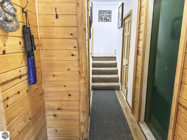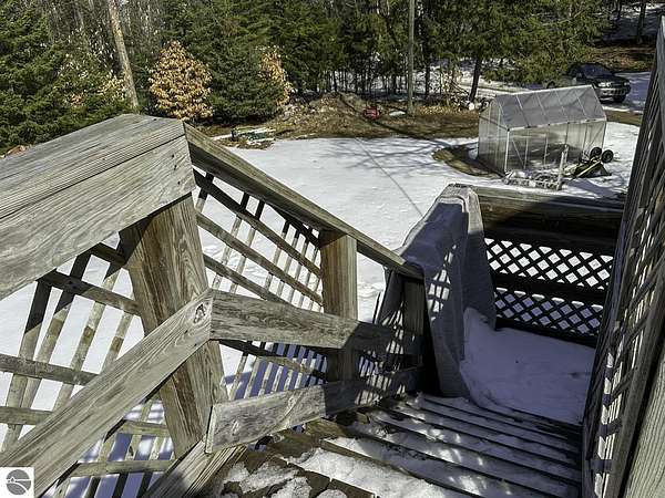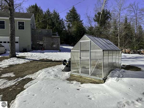 Tucked away in the woods and just a short walk from the Hidden Valley Trail and McCauley Point - Lake MI, this cozy home offers the perfect blend of peaceful seclusion and easy access to nature. Whether you're seeking a quiet retreat or a full-time residence, this home is ready to welcome you. The main floor boasts a spacious, open-concept great room that seamlessly connects a large kitchen and dining area, ideal for family meals and entertaining. A door from the kitchen leads to a generous deck, where you can relax and enjoy the serenity of the surrounding woodland - perfect for outdoor dining, lounging, or simply soaking in the natural beauty. On this level, you'll also find two comfortable bedrooms, a full bath, and a convenient laundry area. The lower level offers additional living space (perfect for entertaining guests) with a wood burning stove. This area could easily be transformed into a third bedroom or any space to suit your needs, as well has maintaining a large den area for an additional shared space. A nearby half bath adds practicality, and the attached garage features a workbench and storage shelves for all your tools and hobbies. This home sits on two private lots, totaling 2 acres, providing ample room to enjoy the outdoors. An established garden area offers a great spot for gardening enthusiasts, while the included greenhouse is perfect for growing plants year-round. The property also boasts a deep well with reliable, high-quality water. With so many thoughtful details and the natural beauty surrounding it, this home is a true hidden gem. You need to see it in person to truly appreciate all the home has to offer. Welcome to your new retreat!