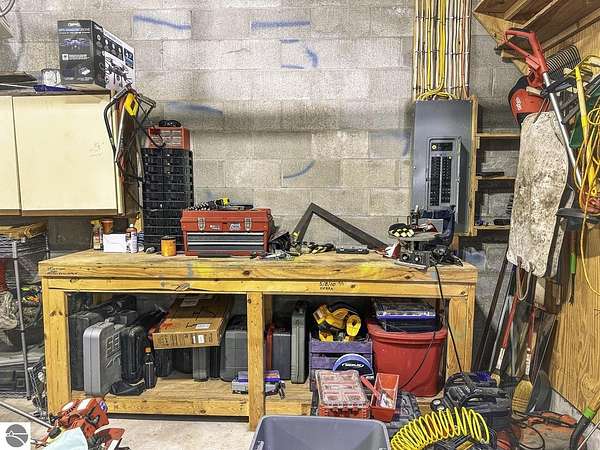 - Beamed Ceilings, Built-In Bookcase, Den/Study, Exercise Room, Foyer Entrance, Great Room, Island Kitchen, Workshop