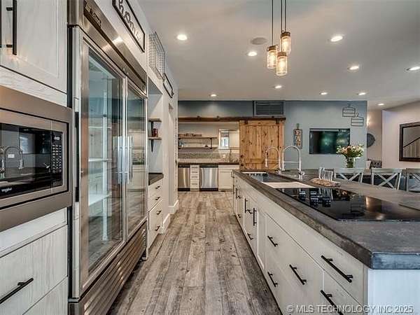 Are you looking for a property that provides luxury, privacy, and room to play? Situated on nearly 40 acres, this home is a must see. Drive past the pond & down a secluded driveway to the main home. Walk through the two-story foyer into an impressive kitchen made for entertaining. You'll find an L-shaped bar with large prep sink, commercial refrigerator and freezer, double ovens and electric cook top. Enjoy two pantries and a prep kitchen with 2 dishwashers and a second sink. Kitchen includes a custom table with seating for 12.
