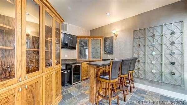 If the inside isn't impressive enough, head to the back yard to enjoy your own private oasis. While the pool and hot tub are the main event, the deck over-looking Salt Creek provides a peaceful, shady spot to enjoy your morning coffee and relax. The outdoor kitchen includes a grill, refrigerator, pergola & cabinets.