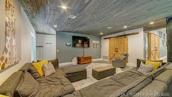 Turn right onto S 4112 Rd from 412 E past Catoosa. Left onto Admiral, Right onto 273rd St. Left onto 7th St. 7th Street will turn into 6th Place. Continue down the hill, you will see the white barn on the left. Driveway to home is just past the barn.