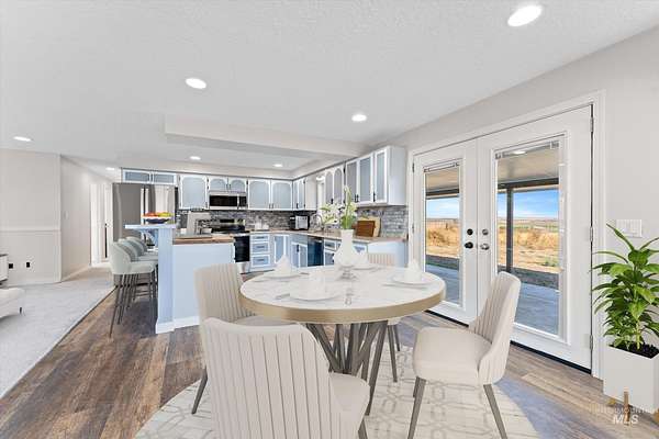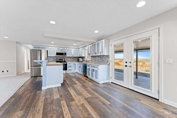 Property has beautiful views, space, privacy, and usable land. Country living at its absolute best! This property has it's own pivot for irrigation! Canyon County will also allow a second home on this property (it can not be split but another home can be added). The property has the perfect site for an additional home with stunning views! Priced to sell: well below recently appraised value. This home will move quickly! The spacious, single level home has been renovated recently. It now has band new interior paint and carpet throughout the home and a recent upgrade to windows. Wood burning fireplace with floor-to-ceiling stone mantel in the living room is beautiful and functional. This is the last house on a private lane, with no back neighbors, you'll enjoy uninterrupted views from the covered back patio, and mature trees lining the entire front offer shade & privacy. Set up for both horses & cattle, this modern homestead is built to work hard and play harder. There are several acres of fenced, irrigated pasture and covered corrals. Multiple outbuildings include a 35x35 barn w/ 220v, a 28x40 machine shop w/ 110v, 14x15 shed, several large lean-tos and livestock shelters. Current appraisal of $832,000 and inspections completed and will be shared with interested parties.