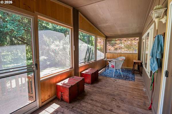 Private 20-acre horse property in one of Lane County's most desirable locations, offering a quiet, secluded setting just minutes from town and everyday amenities. The land is thoughtfully laid out for horse enthusiasts, with fenced and cross-fenced pasture, a corral, and a 4-stall barn with tack and feed space. A trail from the home leads about 200 feet to the pasture, which connects directly to the corral and barn, creating a convenient loop for turnout, training, and daily routines.The property features a great balance of open grazing ground and wooded acreage that provides shade, privacy, and riding opportunities. Over five acres in the northeast corner are forested with established riding trails already in place. The gently elevated home site offers privacy and the potential for surrounding views with selective tree clearing.The well-maintained, one-owner home includes an open-concept layout, durable laminate flooring, and a screened-in porch ideal for relaxing evenings. A gated entry adds privacy and security. The grounds also include a fenced garden area, mature fruit trees, and a park-like setting, making this a rare opportunity for those looking for a ready-to-enjoy horse property with room to ride and roam.