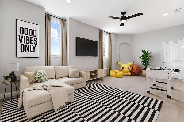 Upstairs offers an oversized loft, two generously sized bedrooms, ample storage, and a Jack & Jill bathroom -- ideal for guests or family living.