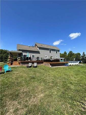 WOW!!!What an amazing home. Fully Renovated 2-Story Home on 5 Acres. Beautifully renovated two-story modern farmhouse just 5 miles from Pine City on a blacktop road. Spacious layout with updated kitchen, top of the line stainless appliances, and large bedrooms. Retreat to a stunning master suite featuring a spacious bathroom complete with a walk-in shower and a separate Jacuzzi tub perfectly positioned beneath a window overlooking your beautiful country property. The large master bedroom offers peaceful views and a sense of privacy, creating the perfect place to unwind at the end of the day. Features a finished basement with private bath, bedroom, laundry, and media room—perfect for guests or multi-generational living. Dual laundry rooms, outdoor wood boiler, dual furnaces and A/C units. New ICF foundation and 2018 addition with 16×36 storage space. All new windows, plumbing, wiring, septic (2018) and well (2000). Enjoy the 15×32 pool with deck, covered porch, wraparound sidewalks, 40×40garden, fenced pasture, 16×30 animal outbuilding, 40×40 shed, detached 2-car garage with loft, and chicken coop. Near the St. Croix River, Snake River, Cross Lake, Pokegama Lake, and Chengwatana State Forest.