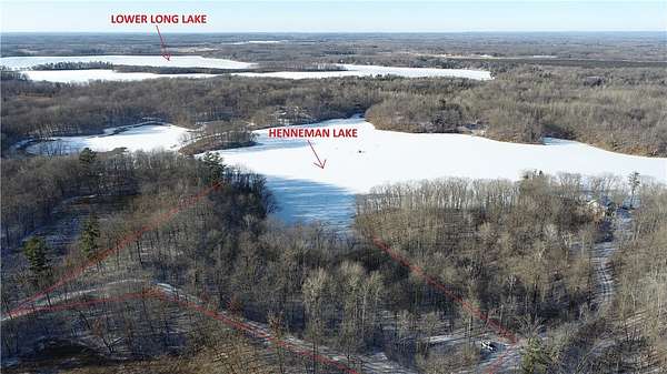 On the shore of a pristine glacial lake, this extremely private lot offers a peaceful location for your home or cabin. A beautiful winding drive though 720 acres of protected land leads to the 5.8 acre lot, with 500 feet of private lake frontage. Henneman Lake is a deep and crystal clear lake. The water quality and abundance of wildlife, including nesting loons, is preserved with a no wake ordinance. Bring your pontoon, fishing boat, kayak, canoe and paddleboard to explore the lake. The clean water is excellent for swimming, and there is great fishing for Bass, Panfish and Trout. This scenic lake has very little development. The lot is deep in the woods of a former Girl Scout camp. Fiber Optic internet and electric is at the road, and a driveway to the property is installed. Located near Lower Long Lake in the gorgeous Blue Diamond vacation area, just 45 min North of Eau Claire.