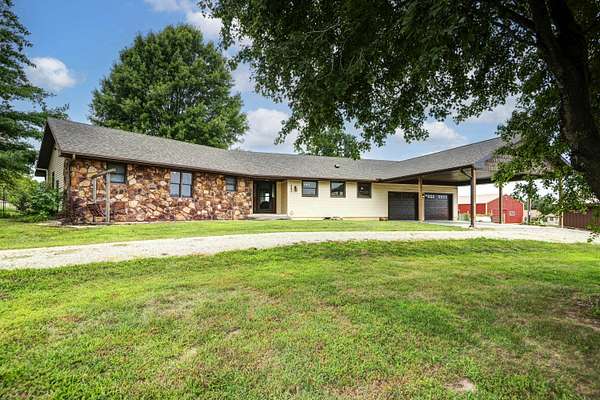 So Much to Offer! This custom, 3500 m/l sq. ft, 4-bed, 3-bath ranch sits on 3.85 acres with shops, cross-fencing, and major updates already completed! Tucked away on a quiet dead-end street, yet just minutes from shopping and I-44, this home offers the perfect blend of privacy, convenience, and distinctive charm.Major updates include a new roof (2024), new heat pump and central AC (2025), and fresh paint. Additional features include a whole-house generator, water purifier, and quality Andersen windows, making the home move-in ready, energy-efficient, and low-maintenance.Outside, enjoy endless possibilities! Two large shops (30x40 and 16x40) with concrete floors--one wired with 220--are ideal for a handyman, hobby farm, or home business. With cross-fencing, paddocks, a chicken coop, indoor animal stall, and a 10x24 run-in shed, the land is ready for homesteading, hobbies, or livestock.Inside, a bright living room welcomes you with natural light from dual sliding doors complemented by a cozy wood-burning fireplace with insert. All bedrooms are on the main level, including a spacious master suite with multiple closets and private ensuite with walk-in shower. A utility room and additional bath are conveniently located off the garage and back porch. The spacious kitchen features generous butcher block counters and a charming coffee bar, while the formal dining room offers flexible space for gatherings or extra living areas. Downstairs, enjoy additional living space including an exercise room, storage, storm shelter, and easy-out access. Full of character and thoughtful design, this home blends comfort, functionality, and peace of mind--truly one-of-a-kind. Move-in ready and filled with possibilities, it's ready to welcome its new owners inside and out!