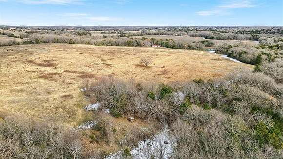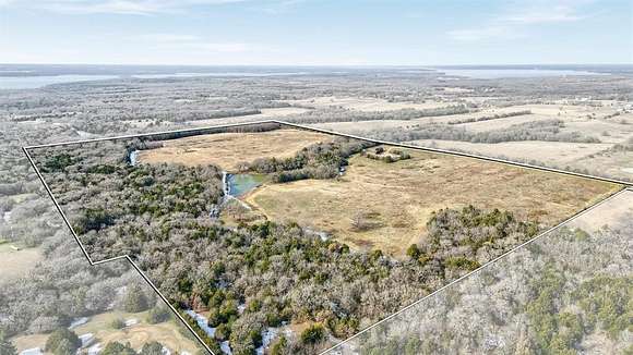 So many possibilities! This 91.25-acre ranch just moments from Flowing Wells Marina and Hagerman Wildlife Refuge offers a serene, natural retreat. Winding creeks, a beautiful mix of majestic oak and pecan trees, accented by a tranquil pond-perfect for fishing or simply enjoying the peaceful surroundings. There is a 14 x 50 finished out building near the pond, with electrical hookups, a mini-split for HVAC, and an outdoor firepit. The generator stays with the building. This sprawling landscape has plenty of open space with wooded areas and abundant wildlife including deer and turkey! There are 3 feeders located on the property, will also stay. Pond is stocked with Bass, Bluegill and Crappie. It's an ideal setting for recreational use, agriculture, or building your dream home. There is a portion of the property that falls into the flood plain, but still plenty of space to build. The proximity to Lake Texoma adds further appeal, offering access to water activities, boating, and breathtaking views. Whether you're seeking a private getaway or a homestead, this expansive ranch property combines natural beauty with limitless potential.