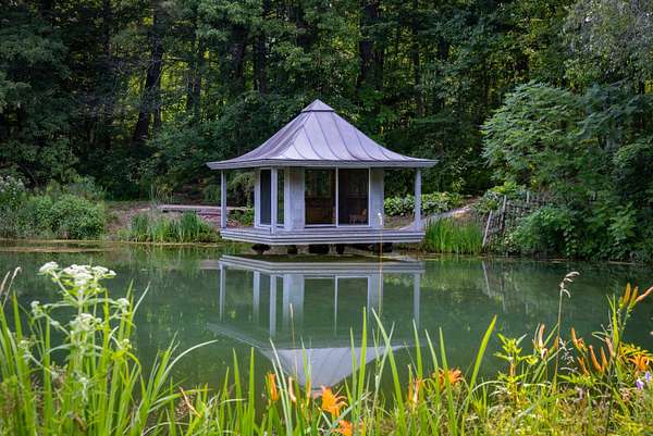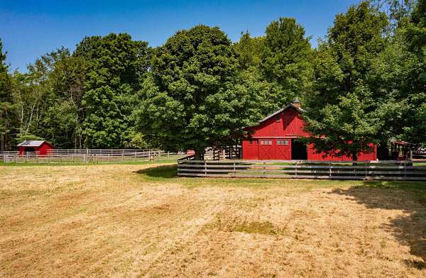 Private 36.6+- acre farm in Charlotte's countryside featuring open pastures, sunlit perennial and vegetable gardens, and a beautifully renovated three-bedroom, three-bath farmhouse with stained-glass accents, wood floors, and multiple porches. More than just a property, this is a lifestyle ready to be lived. Walk across the footbridge to the pastures, observe wildlife at the pond, or enjoy skating during the winter months. With peaceful views and quiet natural surroundings, the property is ready for its next chapter. Highlights include a thoughtfully updated farmhouse with a Tulikivi masonry stove, oak, cherry, pine, and tiled floors, and large windows overlooking the gardens. Equestrian facilities feature an Amish-built six-stall barn with tack room and hay loft, fenced paddock, tractor shed, and a dedicated well. Outdoor amenities include a tea house on the pond's edge, screen house, fenced vegetable garden with sprinkler system, fruit trees, and a firepit patio. Additional structures include a detached two-bay garage with ADU potential upstairs, a multiuse barn with workshop, and multiple storage outbuildings. Modern systems comprise 58 SunCommon solar panels, underground power, propane heat with minisplits, two drilled wells, and updated electrical. Just 5 minutes from the town center and 30 minutes to Burlington.