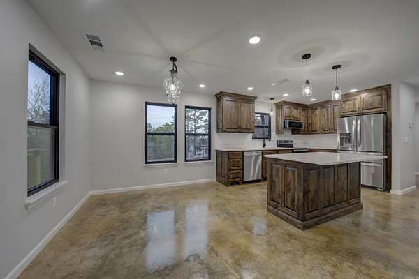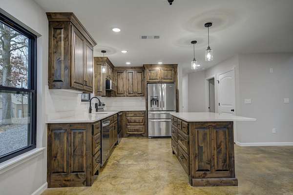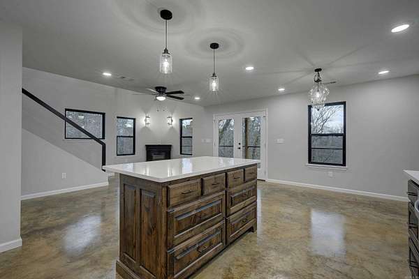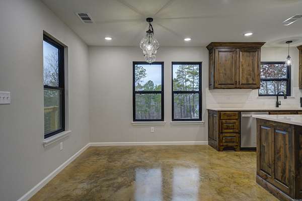 Welcome to your own slice of paradise on beautiful Lake Greeson, just minutes away from Swaha Marina and boat ramp. Nestled on a generous 1.6-acre lot, this brand-new home offers beautiful lake views, perfect for those who love recreational boating, fishing, or simply unwinding in nature's beauty. The inviting deck that surround this home make it the perfect place to entertain or sip a cup of coffee and unwind. The two bedrooms upstairs offer their own walk out porch areas for privacy. Every detail has been carefully crafted with high-end finishes, including stunning alder wood cabinets, solid oak stairs, and a design that maximizes natural light through an abundance of windows. Looking for storage or a place to park your boat? There's room to spare with flood lights included! Perfect for weekend getaways, family retreats, or full-time lake living, this home combines comfort, style, and the very best of lake living. Extras include: sprayfoam insulation on exterior walls, ceiling and upstairs flooring. 2 HVAC units, tankless water heater, blocks on raised slab have been sealed as a water barrier for moisture protection inside slab.