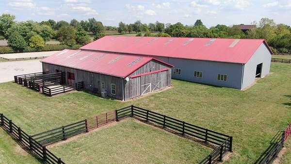 A one-of-a-kind equestrian dream in Central KY - The Horse Capitol of The World - just 15 min from the Kentucky Horse Park! This rare jewel, 5 acre "boutique farm" in Georgetown, with 2 excellent arenas, offers high value vs. other larger equine facilities but at great savings to you. This is an ideal facility for year-round dressage training and/or jumping training. The property's highlight is the large, fully electric Amish-built indoor arena (70' x 160') with professional footing, mirrors and 16 new skylights, which is attached via breezeway to the heated barn featuring six 12' x 14' stalls (easily converted to 12' x 24'). Each stall has matted floors, electrical outlets, freshly painted drop down fronts and back Dutch doors leading to walk outs for year-round use. The spacious, airy barn has 2 full bathrooms, 2 HVAC's, 2 hot water heaters, skylights, air conditioned tack and feed rooms plus a clean, cozy studio apartment with full bath and kitchen, stacked washer and dryer, and ample closet space - ideal for renting to a farm manager or farm hand. Outdoors, you can utilize 6 aerated paddocks and the larger outdoor arena (196' x 80') with freshly painted plank fencing (facing the roadway and entrance). There is a large 24' x 24' storage shed/garage, ideal space for your tractor or hay, and also the must-have run in shed (12' x 24') in the rear pasture. French drains surround the entire arena and barn. [See Seller's statement re flood zone. Call for more info.] 283 Leesburg Pike in Georgetown is conveniently located to local shopping with an easy, scenic commute to Midway and Versailles, and also Lexington via Newtown Pike. At only 15 years old, this is a smartly constructed and well-cared-for equestrian property, fitting the bill for a smaller but very efficient training facility. Call for your appointment to personally view this special place in Central Kentucky horse country.