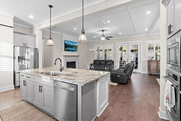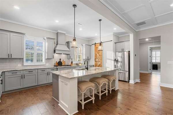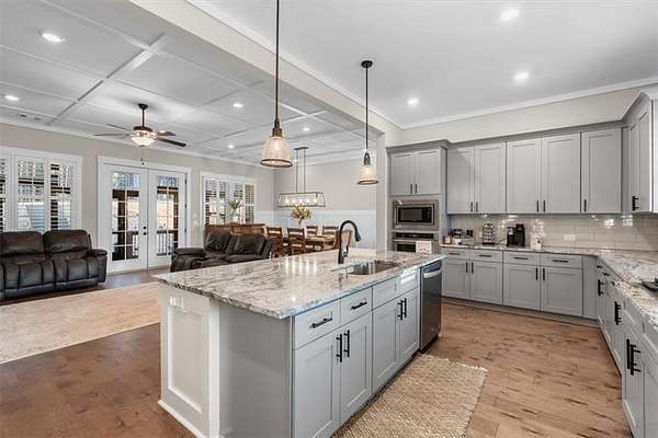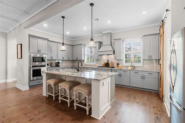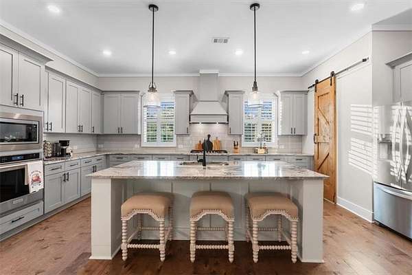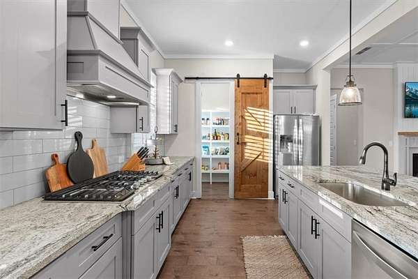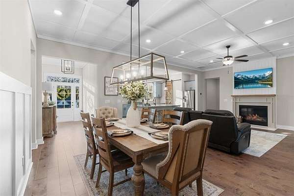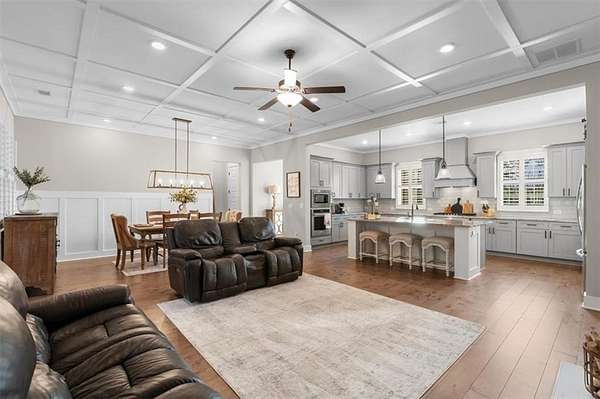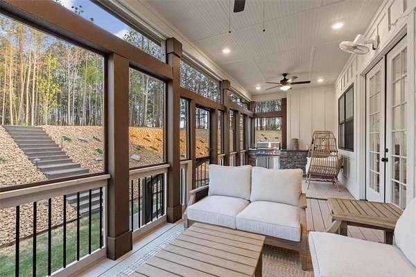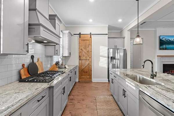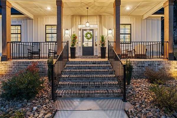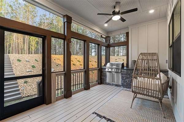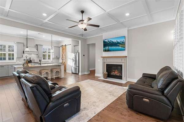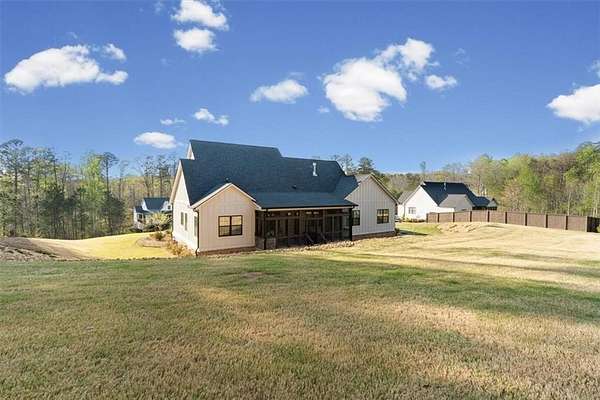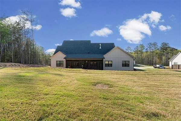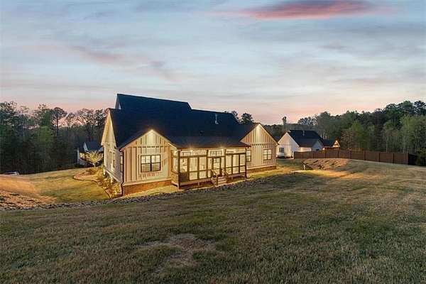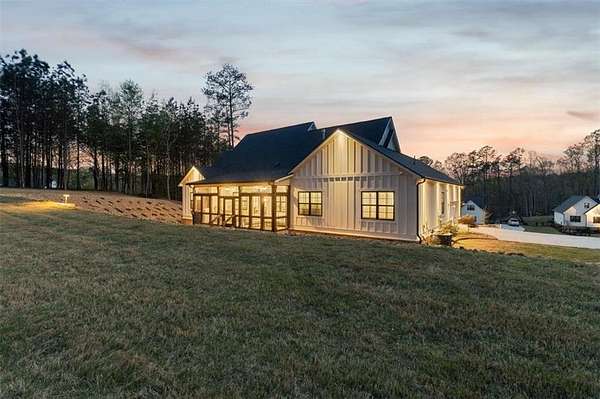 Modern Ranch Farmhouse Perfection: Discover the ultimate blend of sophisticated luxury and tranquility in this better-than-new modern farmhouse. Nestled within the exclusive gated community of Tate Reserve, this 2023-built masterpiece sits on a prime, professionally landscaped 1.99 acre lot, tucked away and backing up to a lush canopy of trees. Step into this open-concept sanctuary boasting 10-foot ceilings, 8-foot doors, and hardwood flooring. The Chef's Kitchen: An entertainer's dream featuring 42-inch soft-close cabinetry, gleaming granite countertops, a 5-burner gas cooktop with an upgraded hood, and a massive center island and large walk-in pantry with a sliding barn door. The Great Room: Flooded with natural light through expansive windows, the family room features a cozy fireplace with gas logs and elegant coffered ceiling seamlessly connected to a large dining area. Primary Retreat: A private wing featuring a spa-inspired ensuite with a deep soaking tub, frameless tiled shower, dual vanities, and a spacious walk-in closet with custom built-in shelving. On the opposite side, you'll find two generously sized secondary bedrooms, providing the perfect layout for families or guests with a large full bath and a conveniently located half bath. Functionality: A dedicated mudroom features a custom built-in bench with storage to keep your drop zone perfectly organized in a large laundry room with upper and lower cabinets to provide plenty of space for all your laundry equipment and supplies. Versatile Living Spaces: Your Private Outdoor Oasis: The living space extends outdoors with a spectacular covered/screened back porch featuring a full outdoor kitchen with a grill, sink, and prep zone. Enjoy your morning coffee overlooking the beautifully landscaped private back yard ideal for relaxing or hosting guests. Community & Location Beyond your property line, Tate Reserve offers an exceptional lifestyle with a 25-acre nature preserve and walking trails just steps from your front door. Located with easy access to I-575, you are minutes from the charm of downtown Ball Ground and conveniently located in the middle of Jasper, Canton, Cumming and Dawsonville. Sellers are motivated! This is a rare opportunity to own the most beautiful home in the community. Schedule your private tour today!
