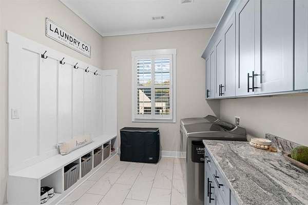 - Coffered Ceiling(s), Crown Molding, Disappearing Attic Stairs, Double Vanity, Entrance Foyer 2 Story, High Ceilings 10 ft Main, High Speed Internet, Recessed Lighting, Tray Ceiling(s), Walk-In Closet(s)