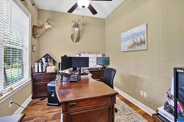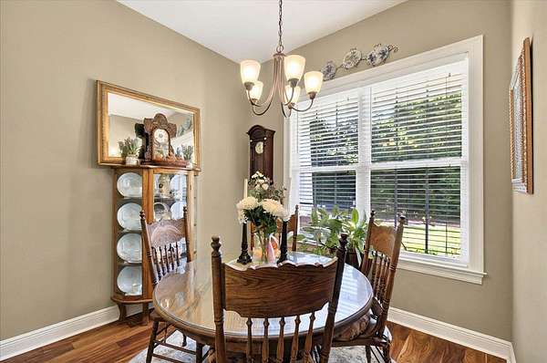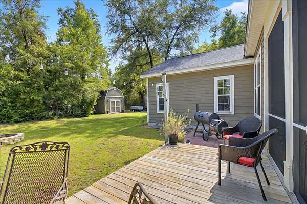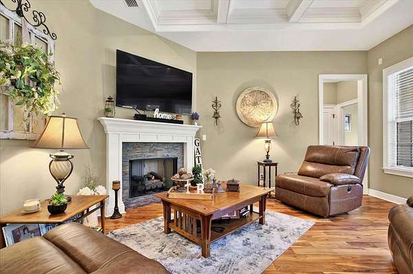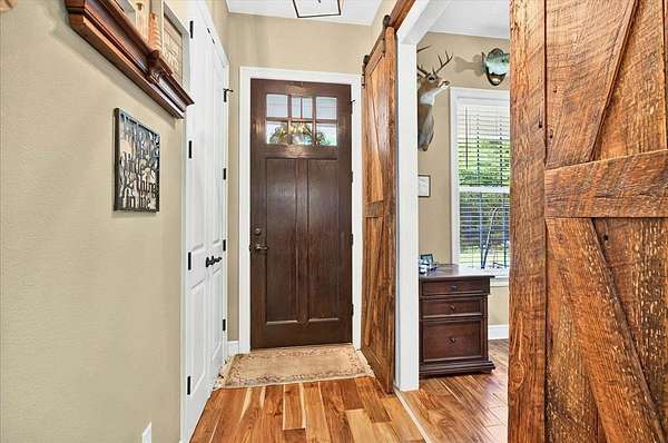 Gorgeous 3-Bedroom Home on 5 Secluded Acres - No HOA! Discover the perfect blend of comfort, style, and privacy in this beautifully crafted 3-bedroom, 2-bath home with 1,853 sq. ft. of luxurious heated and cooled living space. Nestled on a wooded five-acre corner lot, this property offers serene country living with easy access to local conveniences-without the restrictions of an HOA. From the moment you arrive, you'll be impressed by the home's curb appeal, featuring durable Hardie siding and timeless brick accents. Step inside to an open, airy layout with upscale finishes and thoughtful details throughout. The gourmet kitchen is a chef's dream, showcasing granite countertops, a large island breakfast bar, and seamless flow into the dining and living areas-perfect for hosting friends and family. The inviting living room boasts a gas fireplace with a striking stone mantle, while rustic rolling barn doors add character and charm. Your master suite is a private sanctuary, complete with a spacious walk-in closet and spa-inspired tiled shower with both rainfall and high-pressure shower heads. Enjoy coffee or quiet mornings in the breakfast nook overlooking your lush backyard, or relax in the 8x16 screened porch that's ideal for year-round enjoyment. Additional highlights include: Family drop zone/mudroom for everyday convenience Corelux engineered vinyl plank flooring in main areas for style and durability Ceramic tile in baths and laundry Large storage shed for tools and equipment This home is perfect for those seeking space, comfort, and an escape from city life-without sacrificing modern amenities. Schedule your private tour today and experience this peaceful retreat for yourself!