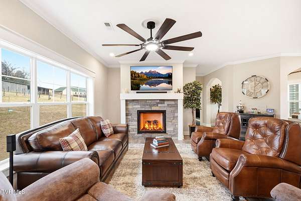 Escape to your own private sanctuary on 20 serene acres in the heart of Jonesborough where privacy and mountain views meet. This unique property is perfectly tucked away from the road by a natural curtain of mature trees providing a sense of seclusion and peace while being surrounded by rolling acreage and generous space between neighbors. The 2024 custom modular home is a showcase of thoughtful design featuring an expansive kitchen with a large island with quartz countertops that flows seamlessly into the dining and living spaces. The primary suite serves as a true retreat with a spacious walk-in closet and a soaking tub perfect for unwinding. With three bedrooms and two bathrooms plus a bonus space and a functional mudroom with laundry this home is as practical as it is beautiful. Outside the lifestyle amenities continue with a massive three-car detached garage boasting oversized doors designed to accommodate your boat, trailer or equipment as well as a two-car carport and two additional outbuildings for workshop or storage needs. The property even includes two RV hookups for visiting guests and a fresh gravel driveway. Best of all this property is offered as a completely turnkey package and comes fully furnished and Kubota LA1065 and Kubota Sidekick 800 SX may convey with an acceptable offer. Why spend time building when you can make this effortless transition into the East Tennessee lifestyle you have been dreaming of. Bring your clothes and move right in. Information gathered from third party and should be verified by buyer/buyers agent.