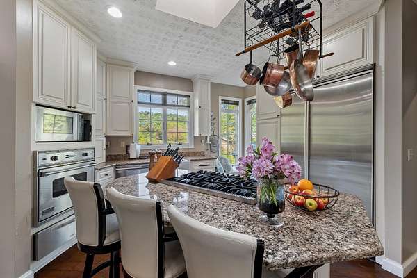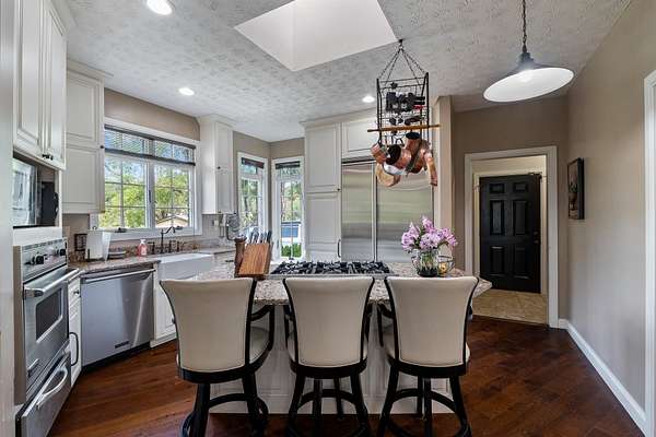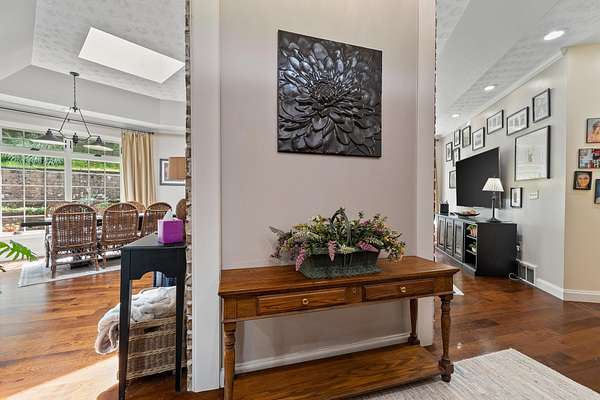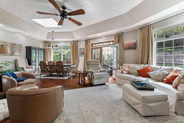 Step into timeless elegance and modern sophistication in this beautifully designed architectural home. Thoughtfully crafted with attention to every detail, this 3BR/2BA residence combines clean lines, open concept living, and luxurious finishes to create an inviting and inspiring living experience. From the moment you enter, you're greeted by soaring ceilings, expansive windows, skylights and seamless indoor-outdoor flow that floods the space with natural light. The open living and dining areas are anchored by vaulted ceilings and premium hardwood flooring, flowing into the attached climate controlled sunroom with glass ceiling, creating an atmosphere of understated luxury. The gourmet kitchen is a chef's dream, featuring top-of-the-line Viking appliances, granite countertops, oversized pantry and a large island perfect for entertaining. Each of the 3 spacious bedrooms offers cozy tranquility, while the primary suite boasts a spa-like en-suite bathroom with high-end fixtures, a soaking tub, and a walk-in shower. Outside, enjoy beautifully landscaped grounds, a private patio, water view from the front door and curated outdoor living spaces ideal for relaxing or hosting. With its striking design, premium materials, and flawless execution, this home is a true masterpiece - perfect for those who appreciate refined aesthetics and exceptional craftsmanship.