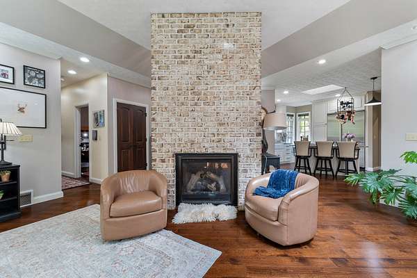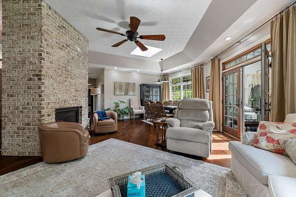 - Cathedral/Vaulted Ceiling, Ceiling Fan(s), Fireplace, Garage Door Opener(s), Hot Water Heater Elec, Skylight, Some Window Treatments, Wood Floor