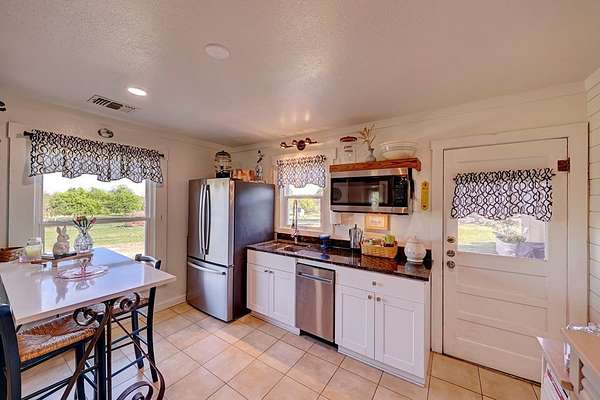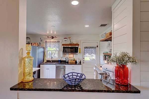 Embrace the freedom of small-town life with this charming 1938 cottage on 3.79 acres in Harper, TX-just a short walk to Hwy 290 for easy access to town or a quick trip into Fredericksburg... This 2 bed, 2 bath home has an extra studio that can be used as a 3rd bedroom or office. Thoughtful updates include a primary suite, party barn, and a detached laundry shed. Recent improvements include a new roof, fresh exterior paint, renovated kitchen and baths, updated plumbing, and windows-all while preserving vintage charm with original hardwood floors, built-ins, antique doorknobs, and a cozy fireplace. The fully fenced property offers two gated entrances and a livestock enclosure-perfect for chickens, goats, cows, or horses. Mature trees, fruit trees, and wildflowers add to the natural beauty. A standout stone outbuilding equipped with a mini-split is ideal for a studio, guest house, or party barn. Peaceful, self-sufficient living with modern comfort-just waiting for your homestead dream to begin.