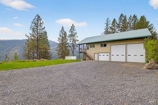 BREATHTAKING VIEWS AT LOW ELEVATION! Searching for privacy & panoramic views of the Clearwater River Valley without the heavy snow load & long drive up the mountain? This unique, low-maintenance property on over 11 acres is the one you have been waiting for! Perfectly situated to take advantage of endless recreational activities & nearby city services, the location is a dream come true. Featuring an open concept floor plan & an abundance of windows, the home itself is awash in natural light & offers sweeping views from every room. The covered Trex deck with tempered glass railing will be a cherished spot to relax & take in the valley scenery. With two 50-amp RV hookups & two 12 X 38 garage bays w/14-ft doors, there is plenty of room for all of your toys. Featuring a highly efficient groundwater-source heat pump, utility bills are kept to a minimum. Don't miss your opportunity to own this truly distinctive property!