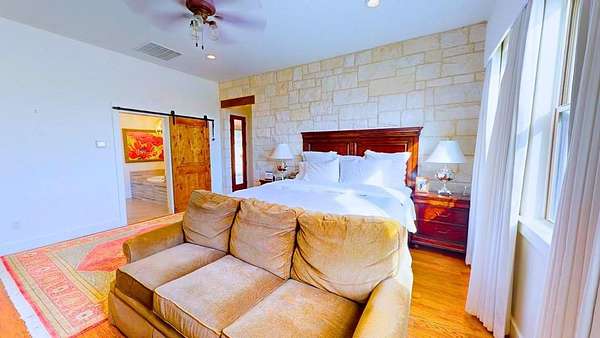 Priced for Immediate Sale - $2,950,000 Firm! That's nearly $1,000,000 BELOW two certified bank appraisals and over $62 per square foot less than the next closest competitor--an opportunity that simply won't last. *Please note that the actual outdoor pictures of the home have a side-by-side conceptual landscaping design that the owner was not able to implement due to relocation". Step into your Hill Country dream estate: 7 bedrooms and 6 full baths in total, inclusive of a private 2/2 guest house, offering a combined 6,313 sq. ft. of luxurious living space. Every detail is designed for comfort, privacy, security, and flexibility. From the dedicated library and executive office to the state-of-the-art fitness center and elaborate smart security system, this property is equipped for modern living at the highest standard. Perfectly set for both intimate family life and grand entertaining, the outdoor oasis features a fully appointed covered kitchen, inviting fire pit, and expansive spaces to host unforgettable gatherings year-round. Energy efficiency is built in with spray foam insulation and a 6,000-gallon high-pressure water storage tank. Located in a prestigious gated subdivision just 5 minutes from Fredericksburg's city limits and the Gillespie County (Fredericksburg) Airport, this home combines small-town charm with unmatched accessibility. This is more than a home--it's a lifestyle and an investment opportunity priced to move. At $195 per square foot LESS than the average $2-$3M listing, you won't find a better value in the Hill Country luxury market. Don't wait--homes at this price point and caliber do not linger. Schedule your private showing today and call it YOURS! Notes: Guest House rentals must be for a minimum of 6 mos or more and a copy of the lease must be submitted to the HOA. HOA Fees include $350/yr designated specifically for Road Maintenance Assessment (RMA's)