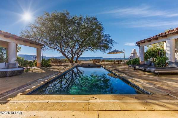 Set at the end of a long private drive, this exceptional Spanish-style estate spans approximately 22 acres across two legal parcels, offering rare privacy, architectural integrity, and breathtaking views of the Santa Ynez Valley. Inspired by the timeless work of Wallace Neff, the approx. 6,121+/- sq ft main residence features 6 bedrooms and 5.5 baths, with vaulted ceilings, oak and Saltillo tile floors, custom-tiled baths, and six fireplaces. Sweeping 270-degree views extend across rolling vineyards and oak-studded mountainsThe home is designed around a beautiful central courtyard with resort-style pool and spa, expansive verandas, outdoor fireplace, and a fully equipped outdoor kitchen -- creating a seamless indoor-outdoor lifestyle with approximately 8,000+/- sq ft under roof. A custom stone motor court and detached 3-car garage with EV charging complete the main residence amenitiesA private 2-bedroom, 1-bath guest casita offers its own living, dining, laundry, and pergola-covered patio. A fully independent second residence at 2750 Calzada Avenue features 3 bedrooms, loft, office nook, detached garage, Hydro-Court clay tennis court and exceptional south-facing vineyard views -- ideal for extended family, guests, or staffThe estate is further enhanced by a wine storage room, integrated sound system, private wells, generator, cisterns, and multiple septic systems. A truly irreplaceable Santa Ynez Valley offering combining scale, privacy, and timeless California elegance