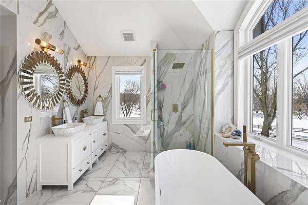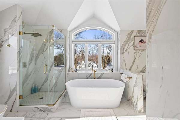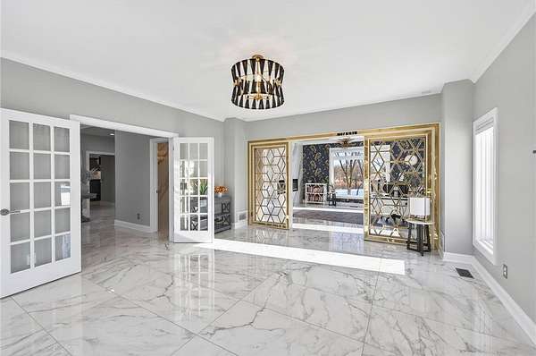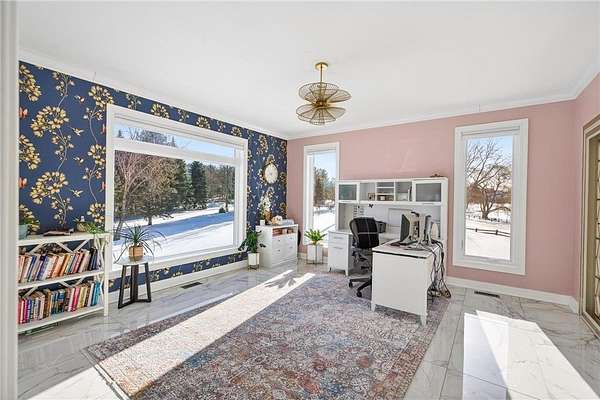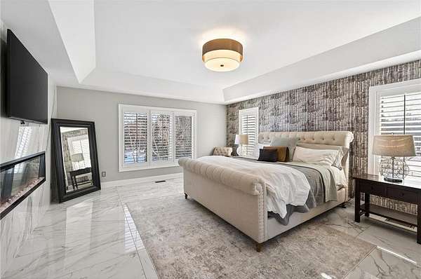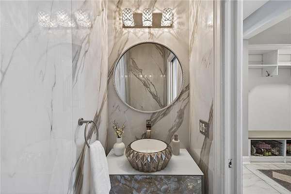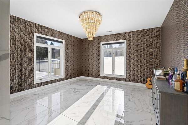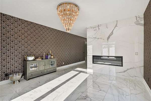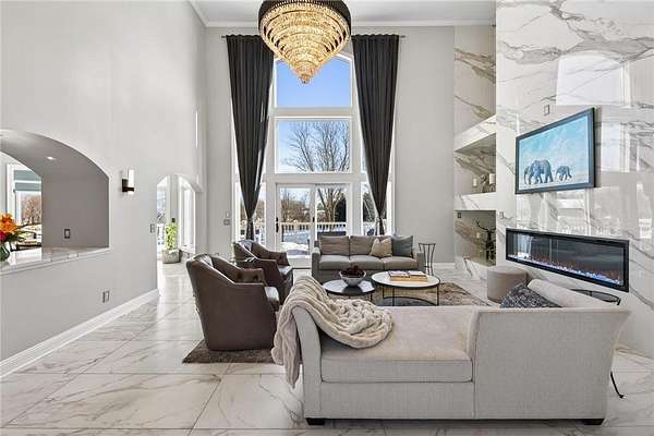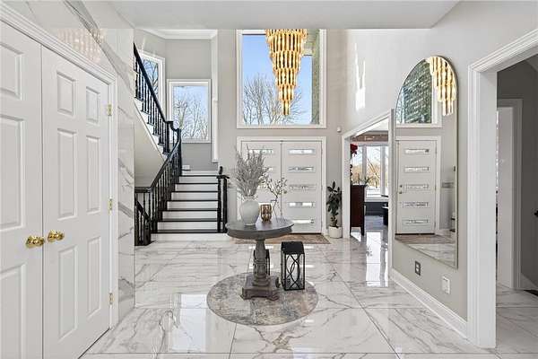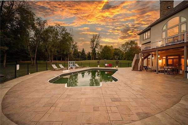Welcome to this stunning 5-bedroom, 7-bathroom luxury home set on a private 2+ acre lot in the highly sought-after Tuckborough Farms community. A circular driveway and stamped concrete walkways lead to the impressive brick-and-stone exterior. Inside, the grand foyer showcases soaring 18-foot ceilings, a statement chandelier, and marble floors throughout the main level. The dramatic family room features floor-to-ceiling windows, a double-sided electric fireplace with marble surround and custom shelving, and breathtaking backyard views. The chef’s kitchen offers quartz and marble countertops, an expansive center island with breakfast bar seating, soft-close cabinetry, stainless steel appliances, and a high-end Wolf range and oven. The kitchen flows seamlessly into the informal dining area, sunroom, and expansive deck—ideal for indoor-outdoor entertaining. The main level also includes a formal dining room, private office with shared fireplace, elegant living room, two half bathrooms, laundry room, mudroom with cubbies, and access to the three-car garage with storage and workspace. Upstairs, the luxurious primary suite features double doors, tray ceilings, marble flooring, an electric fireplace, two walk-in closets with built-ins, and a spa-like bathroom with soaking tub, walk-in shower, and double vanity. Three additional bedrooms, a Jack-and-Jill bath, bonus room, and full bathroom complete the upper level. The walkout lower level is an entertainer’s dream with a spacious family room, sitting area with double-sided fireplace, wet bar, exercise room with private bath, recreation room, fifth bedroom, and additional bath. Step outside to the exceptional backyard featuring a fully fenced in-ground heated pool, patio, expansive deck, fire pit area, and open green space. Updates made between 2021 and now include a new dishwasher and refrigerator, updated lighting, wallpaper, and fresh paint throughout. Additional improvements include plumbing upgrades with new toilets featuring bidets, septic system servicing, and irrigation repairs. The fence has been repaired, and a new mailbox has been installed. Various handyman projects have been completed, including drywall work and the addition of mirrors in the dance room. The garage door spring has been replaced, and the property has also benefited from updated landscaping, custom blinds, and new kitchen hardware. This remarkable property offers high-end finishes, thoughtful design, and exceptional indoor and outdoor living in a premier location.