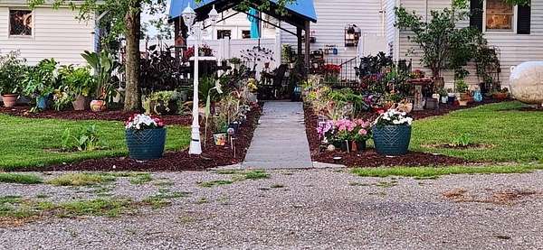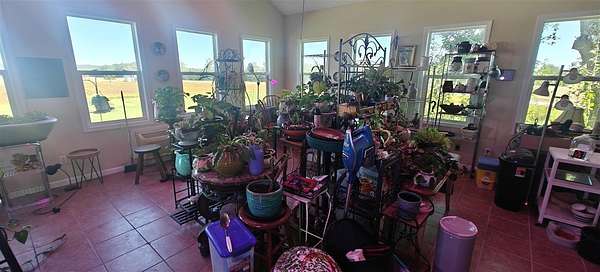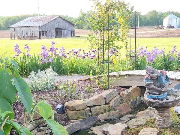- Barn, Covered Front Porch, Garden Area, Landscaping, Sun Room, Trees