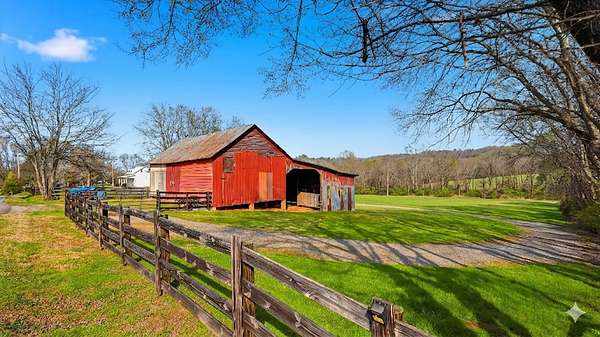 Horse-Ready: Includes an original tobacco barn converted into a functional horse barn, plus split-rail fencing and lush pastures.