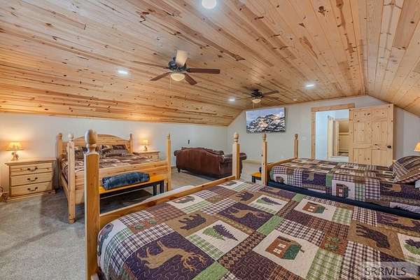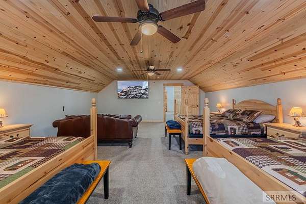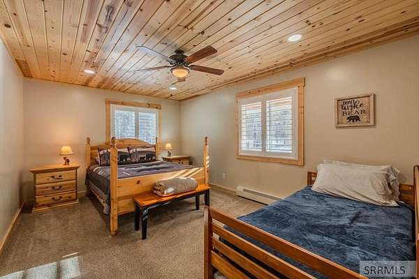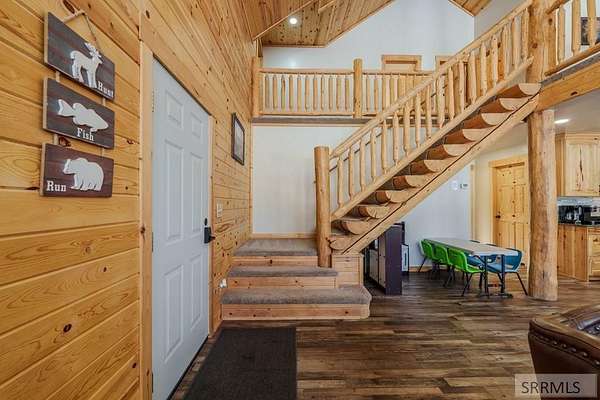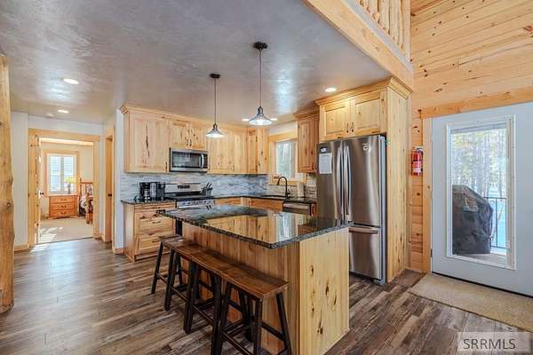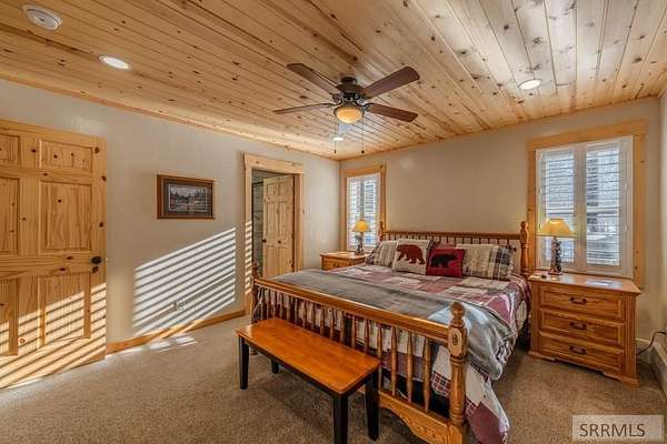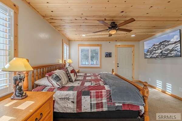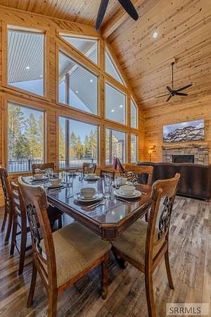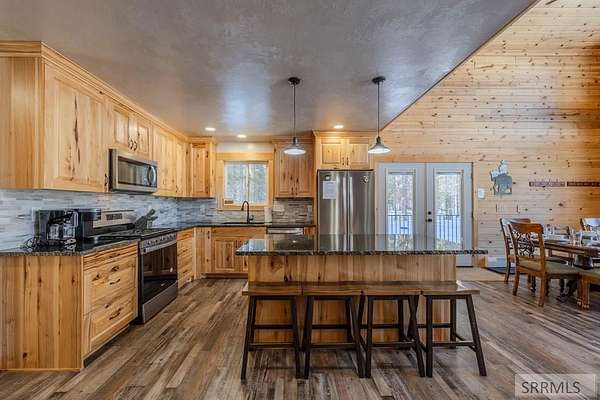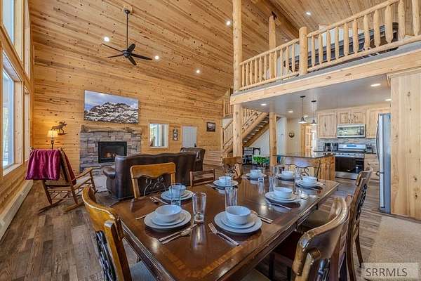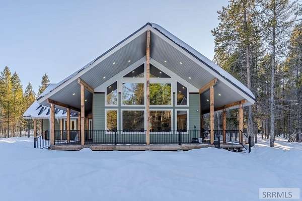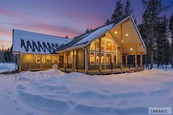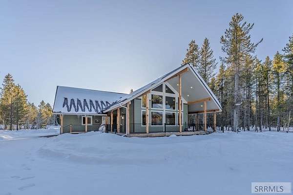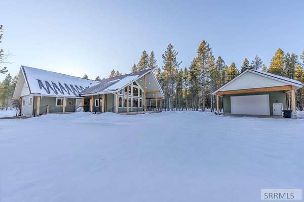 Stunning newer construction on 5.4 acres backing directly to 80 acres of Forest Service ground - offering privacy, recreation, and forest views right out your back door. Built in 2021, this 5-bedroom, 3-bath home was thoughtfully designed with dramatic floor-to-ceiling windows that flood the interior with natural light and frame the surrounding pines. The open-concept living, kitchen, and dining area creates an inviting gathering space ideal for entertaining, featuring granite countertops and quality finishes throughout. A main-floor master suite provides comfort and convenience, while additional bedrooms offer flexibility for family and guests. Upstairs, the expansive bunk room includes a TV lounge area and three queen beds, perfectly suited for hosting large groups or maximizing vacation rental potential. Step outside to unwind in the hot tub beneath Idaho's star-filled skies. The impressive 1,200 sq ft detached shop provides exceptional storage for snowmobiles, boats, and ATVs and is already plumbed for water and sewer, offering excellent potential for additional living space or guest quarters. Direct access to year-round recreation makes this the ultimate Island Park retreat or income-producing investment.