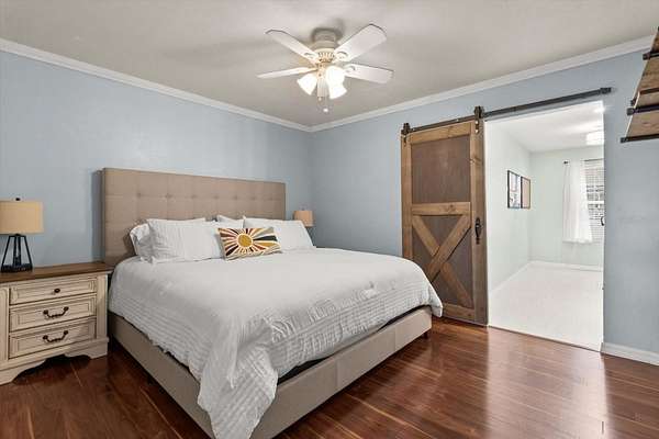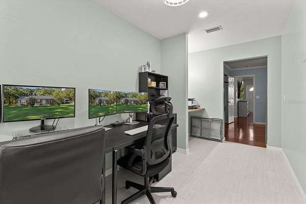The large kitchen is a showstopper with granite countertops, tile backsplash, stainless steel appliances, a farmhouse apron sink, breakfast bar, and eat-in space -- perfect for gatherings and everyday living. The spacious primary suite offers dual vanities, a walk-in shower, and a huge walk-in closet. Guest bedrooms are generously sized, and there's even a dedicated office/flex room to suit your needs.