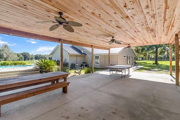 Outdoors, enjoy the pool, a welcoming front porch, and a fully equipped outdoor kitchen with an entertainment area -- ideal for relaxing or hosting guests. The entire property is fenced and includes a dog run. Zoning allows for up to 5 horses and 5 colts, and one home an acre can be built, making this an excellent opportunity for expansion or multi-home living. With no HOA, you can bring your boats, tractors, four-wheelers, and more. Metal roof, tile/wood flooring throughout (no carpet), and timeless modern farmhouse style complete the package. This is a rare opportunity to live the country lifestyle without sacrificing comfort or style!