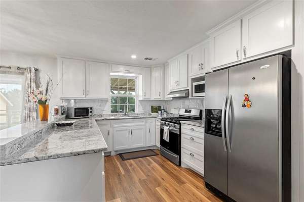 MOTIVATED SELLER Bring ALL offers! Welcome to this beautifully updated 4-bedroom home set on 2.23 peaceful acres. Recently renovated throughout, this property offers a perfect blend of modern comfort and tranquil surroundings. The open-concept living space features new recessed lighting and a stunning kitchen with granite countertops, stainless steel appliances, and plenty of storage. The bathrooms have been stylishly updated with premium fixtures, creating the perfect place to unwind. Step outside to enjoy two covered patios, mature landscaping, and room to create your dream outdoor space-whether it's a garden, pool, or play area. For parking and storage, the property includes two detached 2-car garages, offering ample space for vehicles, tools, or hobbies. Additional upgrades include new central heating and air, energy-efficient windows, updated plumbing and electrical, and a brand-new roof. Located just minutes from schools, shopping, and dining, yet nestled in a serene countryside setting, this home offers the best of both worlds. Schedule your private tour today!