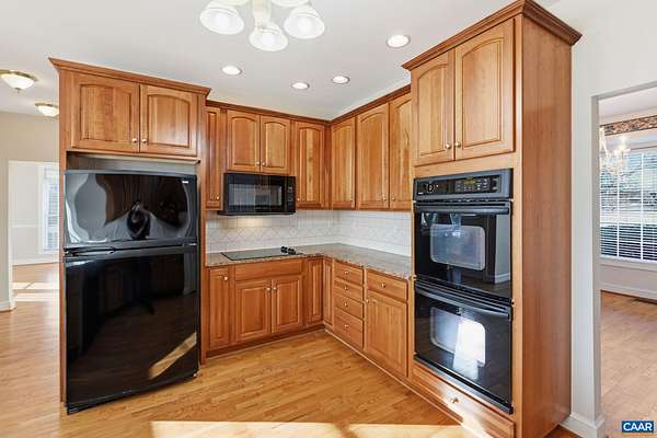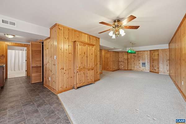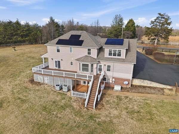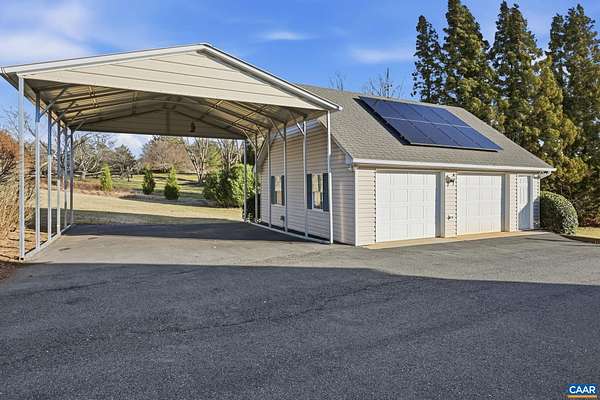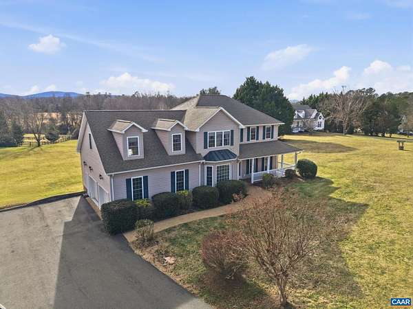 Ideally situated on a large, level sunny lot with beautiful views less than 15 minutes from Pantops, this four-bedroom single-owner home checks all of the boxes! A bright, open kitchen is accessed from main hall, dining room, or attached garage, and boasts two separate pantries and gorgeous backyard mountain views. The large living room with gas fireplace and access to the home's wraparound porch, and a bathroom complete the main level. Upstairs find three carpeted bedrooms with large closets, the laundry utilities, and a full bath. An expansive primary suite awaits at the end of the hall with more stunning views, multiple walk-in closets, hardwood floors, and its own attached bath. Looking for even more space to play, relax, work, or host guests? The fully finished walk-out basement with fourth full bath offers endless possibilities, from home office or exercise room and den, to a basement apartment for guests. Outside, a whole-house generator and fully-paid solar panels have been installed for savings and convenience, while *two* oversized garages with workshop space keep vehicles clean and dry in any season. Even your RV/camper will have a safe spot in the separate carport with oversized gutters. Schedule your tour today!