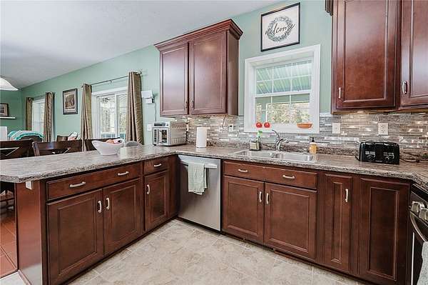 Step inside to an inviting open foyer that leads to a spacious layout designed for modern living. The kitchen offers ample storage and counter space, flowing seamlessly into the main living area for easy entertaining. The home's thoughtful design combines comfort and functionality, while its convenient location offers the best of both worlds--country living close to town and everyday amenities.